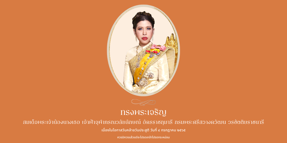 4 กรกฎาคม วันคล้ายวันประสูติ สมเด็จพระเจ้าน้องนางเธอ เจ้าฟ้าจุฬาภรณวลัยลักษณ์ อัครราชกุมารี กรมพระศรีสวางควัฒน วรขัตติยราชนารี​