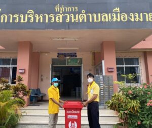 มอบถังขยะสีแดงให้กับผุ้นำชุมชนที่ขาดถังขยะรองรับขยะอันตราย