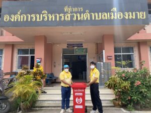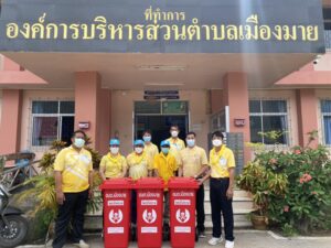วันที่ 5 กันยายน 2565 อบต.เมืองมาย นำโดย นายติ๊บ บุญยืน นายกอบต.เมืองมายและสมาชิกสภา มอบถังขยะอันตรายให้แก่ บ้านแม่เบิน ม.1,บ้านนาไหม้ ม.2 และบ้านไผ่ทอง ม.6 เนื่องจากหมู่บ้านดังกล่าวยังไม่มีที่รองรับขยะอันตราย