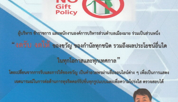 องค์การบริหารส่วนตำบลเมืองมาย นำโดย นายติ๊บ บุญยืน นายกองค์การบริหารส่วนตำบลเมืองมาย คณะผู้บริหาร ข้าราชการ และพนักงานองค์การบริหารส่วนตำบลเมืองมาย ร่วมเป็นส่วนหนึ่งในการสนับสนุนนโยบาย #No #Gift #Policy “#งดรับ #งดให้ ของขวัญ ของกำนัลทุกชนิด รวมถึงผลประโยชน์อื่นใดในทุกโอกาสและทุกเทศกาล ”