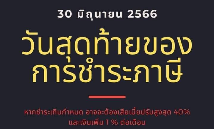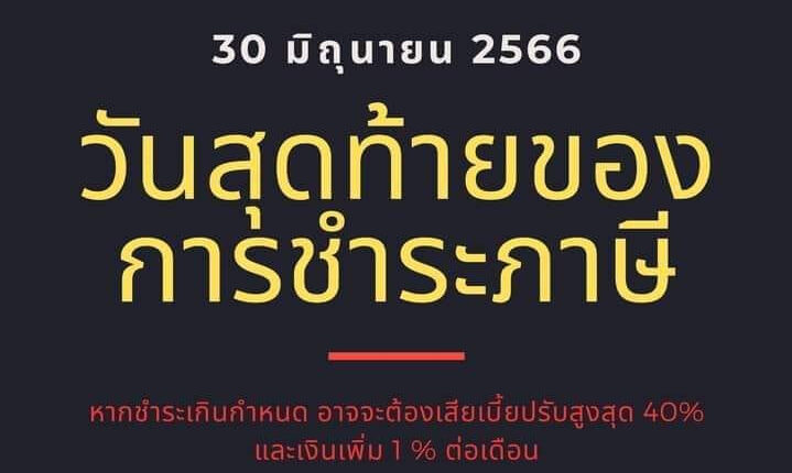 วันที่ 30 มิถุนายน 2566 วันสุดท้ายของการชำระภาษี