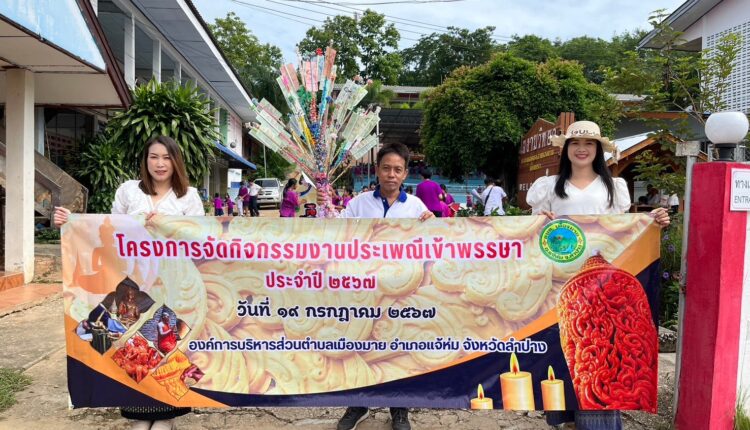 วันศุกร์ที่ 19 กรกฎาคม พ.ศ.2567 นายติ๊บ บุญยืน นายกองค์การบริหารส่วนตำบลเมืองมาย พร้อมด้วยคณะผู้บริหาร ผู้นำท้องถิ่น หัวหน้าส่วนราชการในพื้นที่ พนักงาน เจ้าหน้าที่ อบต.เมืองมาย และชาวบ้าน ต.เมืองมาย เข้าร่วมกิจกรรมงานประเพณีเข้าพรรษา ประจำปี 2567 ณ วัดไผ่ปง ม.4 ต.เมืองมาย อ.แจ้ห่ม จ.ลำปาง