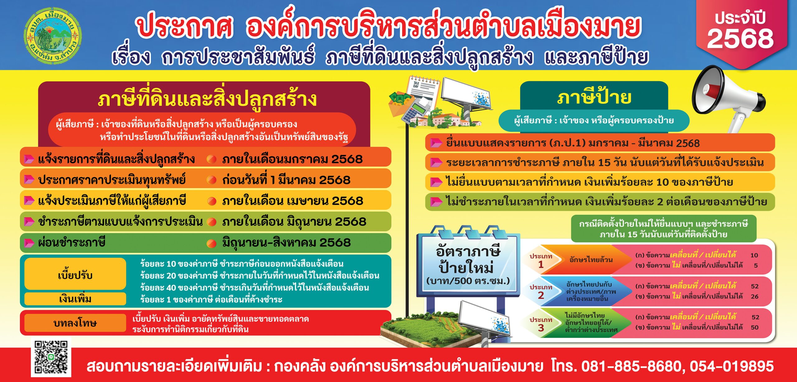 📌📌เรื่อง การประชาสัมพันธ์ ภาษีที่ดินและสิ่งปลูกสร้าง และภาษีป้าย ประจำปี พ.ศ. 2568