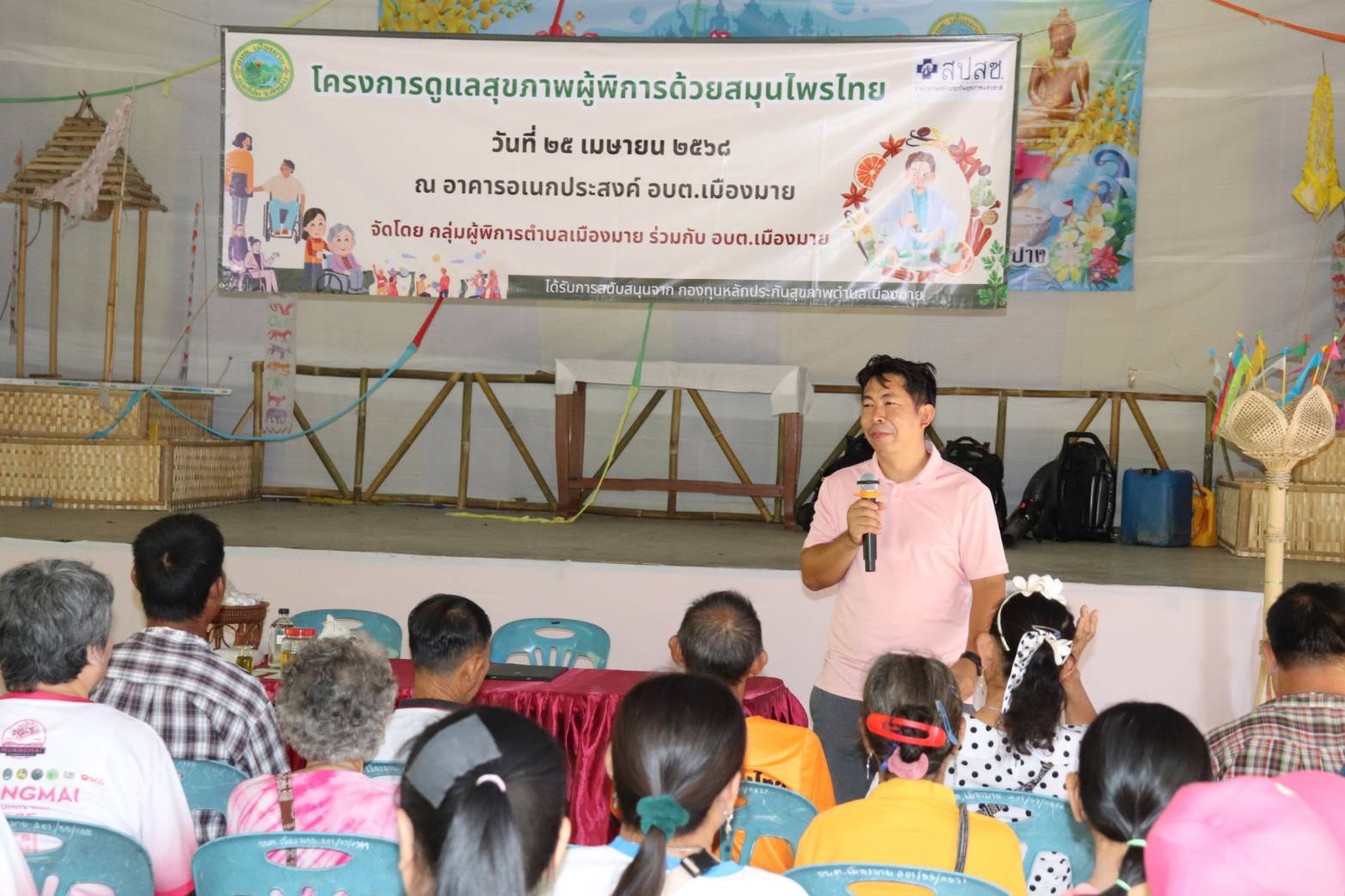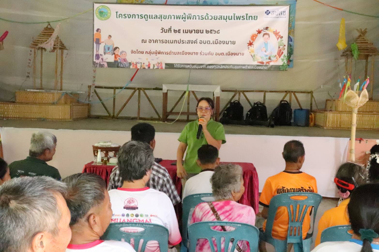 วันที่ 25 เมษายน 2568 ตามแผนพัฒนาคุณภาพชีวิตคนพิการแห่งชาติ ยุทธศาสตร์ที่ 2 พัฒนาคุณภาพการบริหารจัดการ ขจัดการเลือกปฏิบัติ เพื่อให้คนพิการเข้าถึงสิทธิ์ได้จริง (QUALITY MANAGEMENT) เพิ่มประสิทธิภาพระบบการดูแลสุขภาพคนพิการ การรักษาพยาบาลป้องกันความพิการ การฟื้นฟูสมรรถภาพ อุปกรณ์เครื่องช่วยความพิการ เพื่อให้คนพิการเข้าถึงและใช้ประโยชน์ได้อย่างมีประสิทธิภาพ ซึ่งในเขตความรับผิดชอบบริการด้านสาธารณสุขขององค์การบริหารส่วนตำบลเมืองมาย มีจำนวน 6 หมู่บ้าน จำนวนประชากรทั้งหมด 3,127 คน มีจำนวนผู้พิการทั้งหมด 294 คน การดำเนินงานในด้านการดูแลสุขภาพ ผู้พิการยังขาดความต่อเนื่องรวมไปถึงความครอบคลุมในการดูแลผู้พิการยังไม่ได้ตามเกณฑ์มาตรฐานที่กำหนด ดังนั้นเพื่อให้มีการดูแลผู้พิการอย่างต่อเนื่องยั่งยืนให้มีศักยภาพในการปฏิบัติงานฟื้นฟูสมรรถภาพผู้พิการ รวมทั้งผู้พิการรายเดิมที่จำเป็น ต้องได้รับการดูแล และผู้พิการที่ยังไม่เคยได้รับการฟื้นฟูสมรรถภาพในเขตพื้นที่รับผิดชอบ ตลอดจนเป็นการส่งเสริมคุณภาพชีวิตของผู้พิการในชุมชนให้ดีขึ้น และครอบคลุมทุกพื้นที่ขององค์การบริหารส่วนตำบลเมืองมาย เพื่อให้แกนนำ ญาติ/อาสาสมัครหมู่บ้าน สามารถดูแลและช่วยเหลือกันเองได้อย่างยั่งยืนและต่อเนื่อง กลุ่มคนพิการตำบลเมืองมาย จึงได้จัดทำโครงการดูแลสุขภาพผู้พิการด้วยสมุนไพรไทย ขึ้น