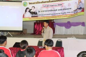วันที่ 22 พฤษภาคม 2568 สภาเด็กและเยาวชนตำบลเมืองมาย ร่วมกับ องค์การบริหารส่วนตำบลเมืองมาย จัดโครงการป้องกันการตั้งครรภ์ก่อนวัยอันควร โดยได้รับการสนับสนุนจากกองทุนหลักประกันสุขภาพตำบลเมืองมาย ณ อาคารอเนกประสงค์องค์การบริหารส่วนตำบลเมืองมาย