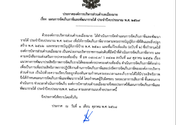 แผนการจัดเก็บภาษีและพัฒนารายได้ ประจำปีงบประมาณ พ.ศ.2569 Loading... Taking too long? Reload document | Open in new tab Share FacebookTwitterGoogle+ReddItWhatsAppPinterestอีเมล์