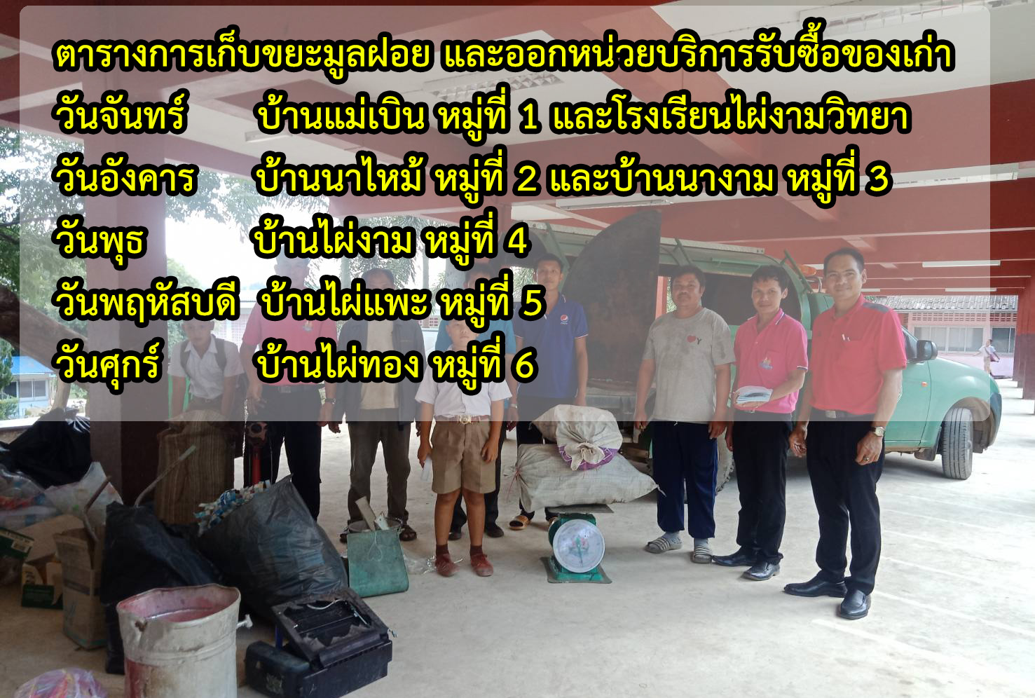 ตารางการเก็บขยะมูลฝอย และออกหน่วยบริการรับซื้อของเก่า