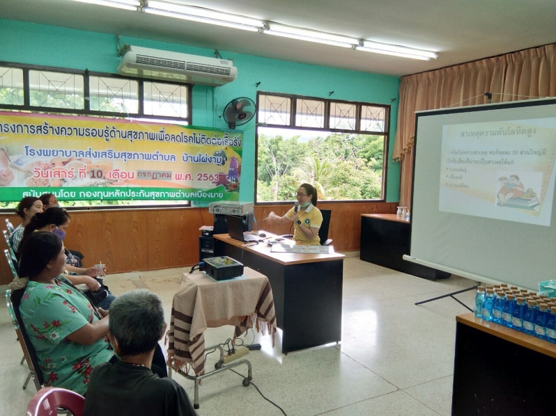 วันที่ 10 กรกฎาคม 2563 กองทุนหลักประกันสุขภาพ อบต.เมืองมาย ร่วมกับโรงพยาบาลส่งเสริมสุขภาพตำบล บ้านไผ่งาม ได้จัดทำ “โครงการเสริมความรอบรู้ด้านสุขภาพเพื่อลดโรคไม่ติดต่อเรื้อรัง” เพื่อให้ประชาชนมีความรู้ด้านสุขภาพป้องกันโรคต่าง ๆ เช่น ความดันโลหิต เบาหวาน และโรคติดต่อเรื้อรังอื่น ๆ สถานที่ ณ โรงพยาบาลส่งเสริมสุขภาพตำบลบ้าน ไผ่งาม ตำบลเมืองมาย อำเภอแจ้ห่ม จังหวัดลำปาง