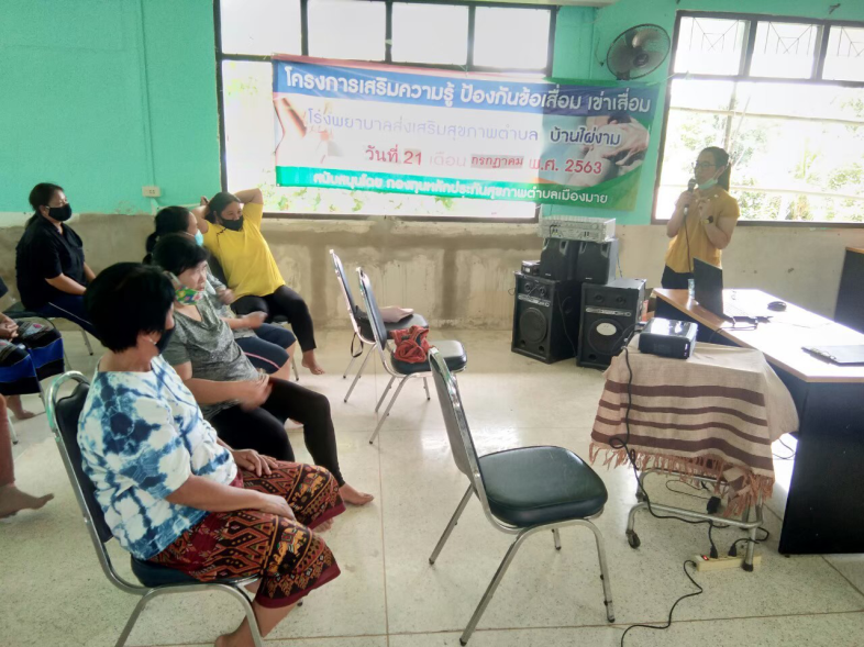 วันที่ 21 กรกฎาคม 2563 กองทุนหลักประกันสุขภาพ อบต.เมืองมาย ร่วมกับโรงพยาบาลส่งเสริมสุขภาพตำบล บ้านไผ่งาม ได้จัดทำ “โครงการเสริมความรอบรู้ ป้องกัน ข้อเสื่อม เข่าเสื่อม ” เพื่อให้กลุ่มเป้าหมาย มีความรู้ความเข้าเกี่ยวกับโรคข้อเข่าเสื่อมและภาวะแทรกซ้อน ป้องกันอาการปวดข้อเข่าและเมื่อย สถานที่ ณ โรงพยาบาลส่งเสริมสุขภาพตำบลบ้าน     ไผ่งาม ตำบลเมืองมาย อำเภอแจ้ห่ม จังหวัดลำปาง