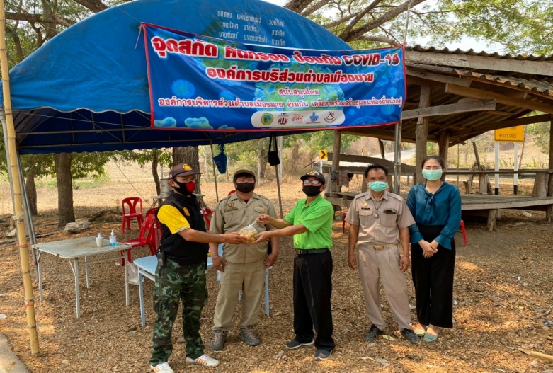 วันที่ 7 -8 เมษายน 2563 เวลา 16.00 น. ว่าที่ ร.ต.อรุณศักดิ์ ปัญญายืน ปลัดองค์การบริหารส่วนตำบลเมืองมายพร้อมคณะ ลงพื้นที่ตรวจเวรประจำจุดคัดกรองการเฝ้าระวังการป้องกันเชื้อไวรัสโคโรนา 2019 (COVid-19) ได้มอบเจลล้างมือให้จุดคัดกรอง จำนวน 4 จุด จุดที่ 1 ถนนทางเข้าหมู่บ้านไผ่แพะ หมู่ 5 จุดที่ 2 ถนนด้านหน้าองค์การบริหารส่วนตำบลเมืองมาย จุดที่ 3 ถนนทางเข้าหมู่บ้านไผ่งาม หมู่ที่ 4 จุดที่ 4 ถนนทางเข้าหมู่บ้านไผ่ทอง หมู่ 6