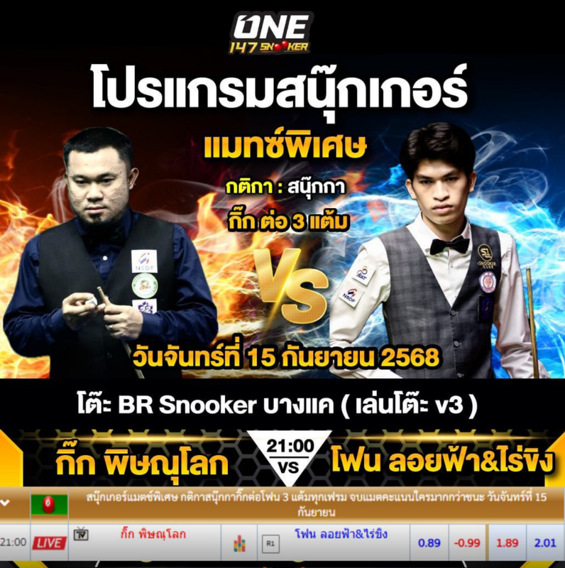 ถ่ายทอดสดสนุ๊กเกอร์ครบทุกแมตช์ ภาพคมชัด